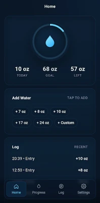 Features: • Quick add – log water instantly • Daily progress – see how much you’ve had today • History – view your past hydration habits • Clean, simple design – easy to use anytime
