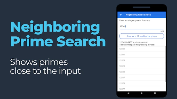 - Neighboring Prime Search: Display neighboring prime numbers based on the input.