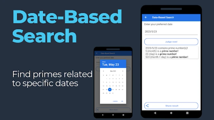 With Prime Number Check, you can easily check if a number is prime and see neighboring prime numbers from your input. You can also discover prime numbers from a specified date.