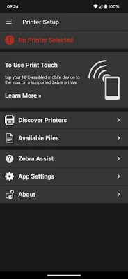 The app supports Zebra printer models running Link-OS 5.0 and later and ZQ200 series, ZQ112, ZQ120, ZR118, ZR138 printer models that run the CPCL (Line Print) and ESC/POS command languages.