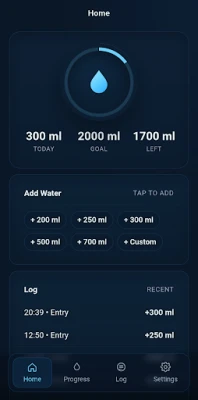 Features: • Quick add – log water instantly • Daily progress – see how much you’ve had today • History – view your past hydration habits • Clean, simple design – easy to use anytime