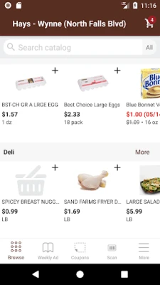 Use your past orders to quickly select and order your groceries, leveraging your favorites, order history and recommended items. Just browse the weekly ad or the entire store, select your items and order for pickup.