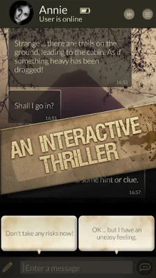 "Help Annie" is an adventurous interactive mystery thriller in the manner of a Messenger App Game – exciting, fantastic and full of suspense.