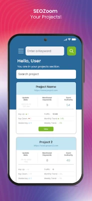 • Everything at your fingertips. The app is a lite version of SEOZoom and offers the main features to: monitor your projects, check the performance of relevant pages and keywords on your site, get data and insights on keywords, URLs, websites or queries on all SEOZoom databases.