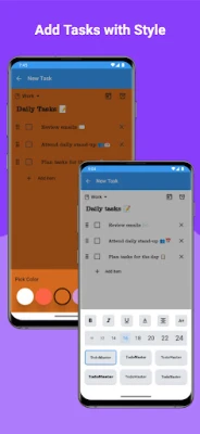 Never miss a deadline with customizable reminders. Set notifications for specific tasks to keep your schedule on track. An alarm sound will play when the notification triggers, and you can even choose a snooze duration to stay on top of your tasks
