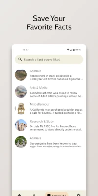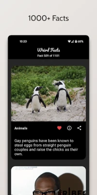 📤 Is a strange fact interesting? Save it by pressing the ❤️ and access it in your favorites section at any time. You can also share facts with ease (the app shares the text and image).