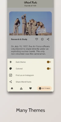 ⚙️ Choose between a dark or light theme, and make the facts colored (the color of the category will change if it’s on) with one tap.